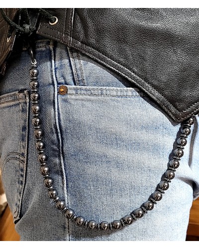 Whips "fouet" biker en cuir tressé noir et perles n° 8