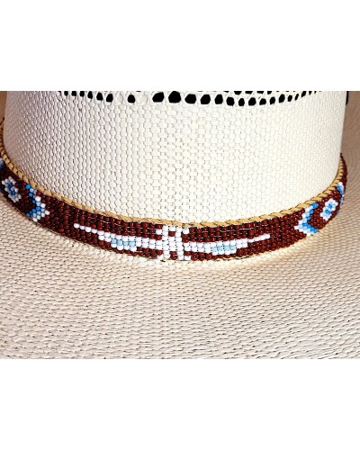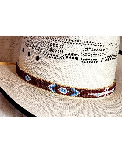 Tour de chapeau perlé fait main marron