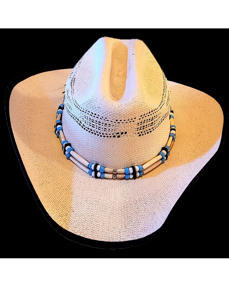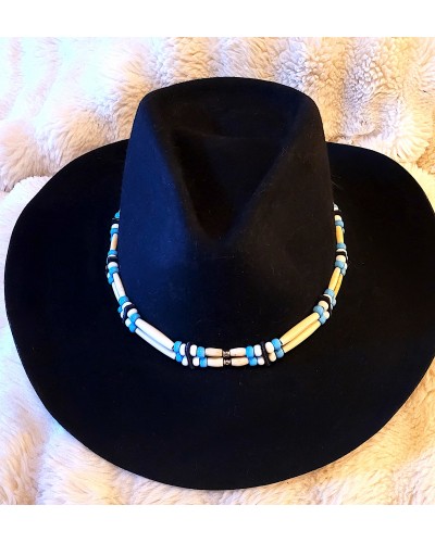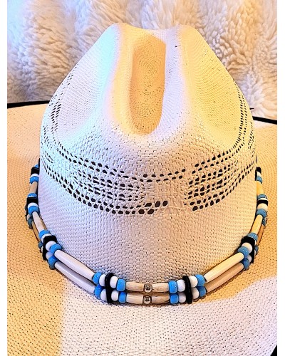 Tour de chapeau os, cuir et perles