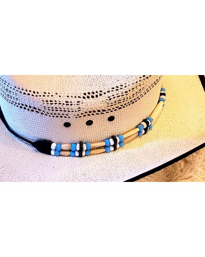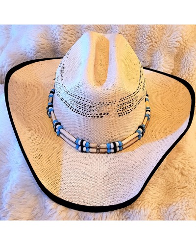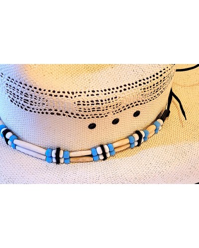 Tour de chapeau os cuir et perles