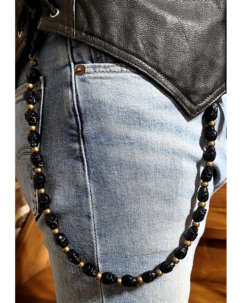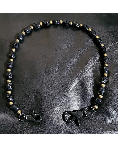 Lacet portefeuille en perles tête de mort noire