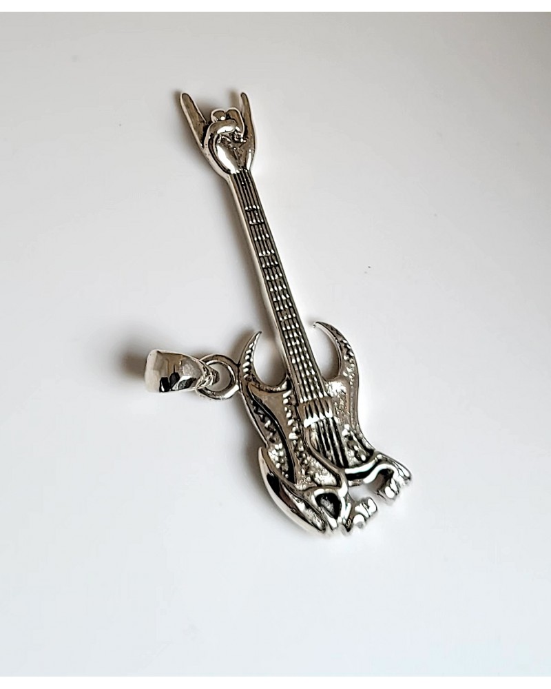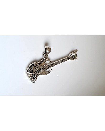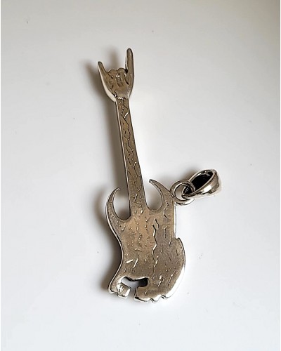 Pendentif guitare rock métal argent